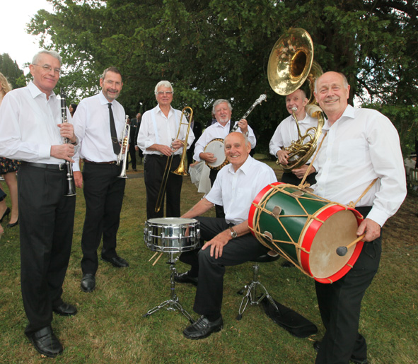 The range of music is wide - at least 800 tunes to choose from - albeit all played in a New Orleans traditional jazz style. All the old jazz marches and rags, ‘Bourbon Street Parade’, ‘Tiger Rag’ and so on; the well-known blues – ‘St. Louis Blues’ and ‘Careless Love’ plus many of the lesser known ones; all are mixed in with the tunes everybody knows - ‘Bill Bailey’, ‘Chicago’, ‘Alexander’s Ragtime Band’, ‘Summertime’ and ‘Ain’t Misbehavin’’, for example. At weddings we are sometimes asked for an opening waltz; at Golden Weddings or Christmas Parties there is just as likely to be ‘It’s a long way to Tipperary’ or a Charleston. At garden parties or other suitable occasions the band can march round amongst the guests. The band has also played at some very moving funerals. We play good rock and roll – ‘Blueberry Hill’ or ‘Hound Dog’ – and there is lots of cheerful singing.